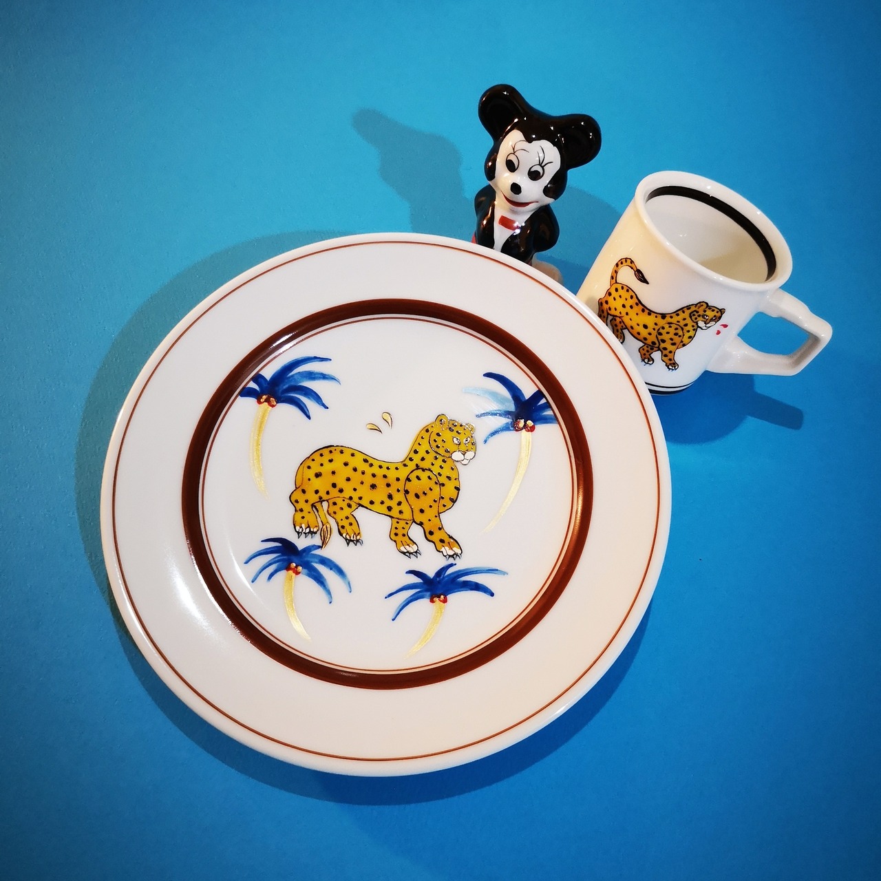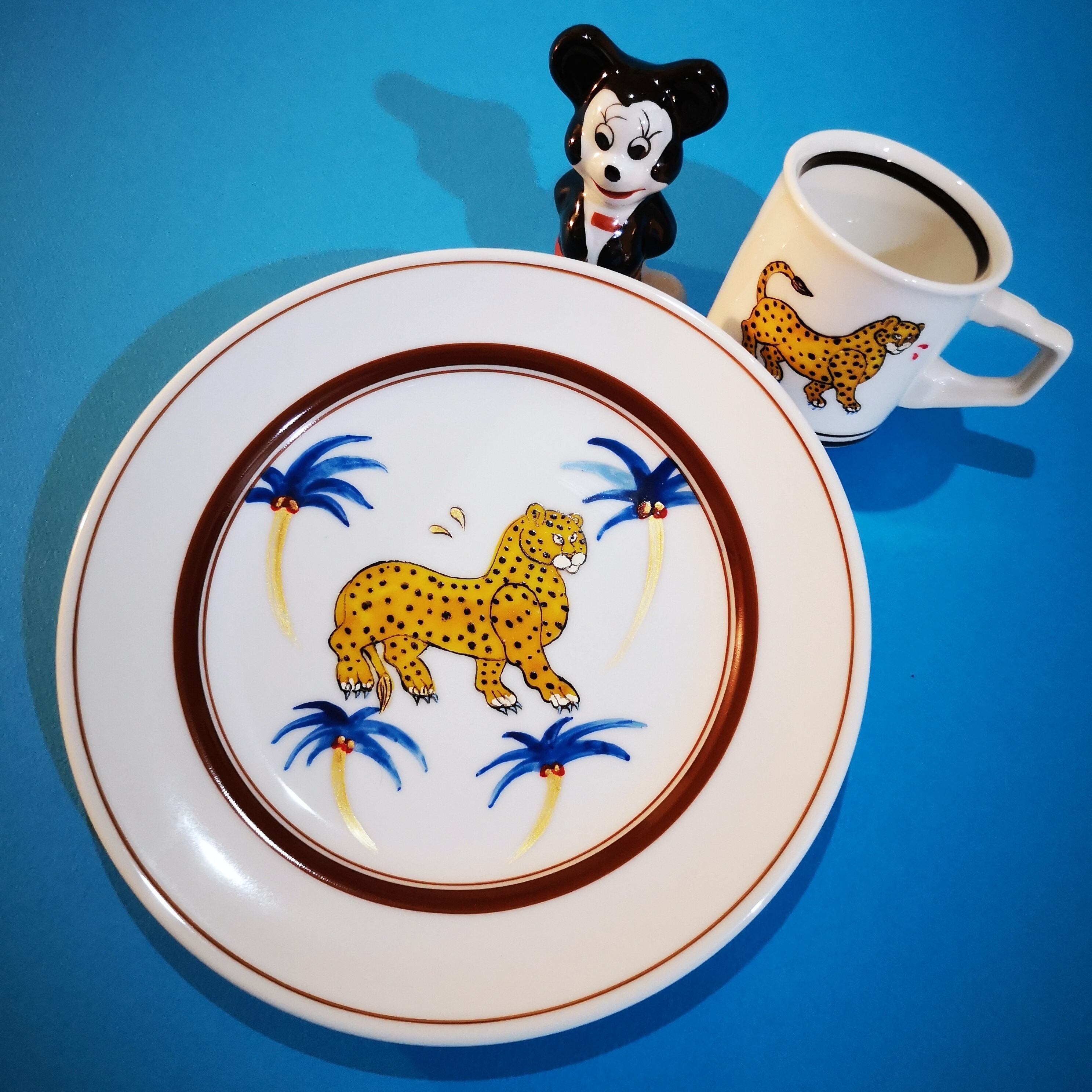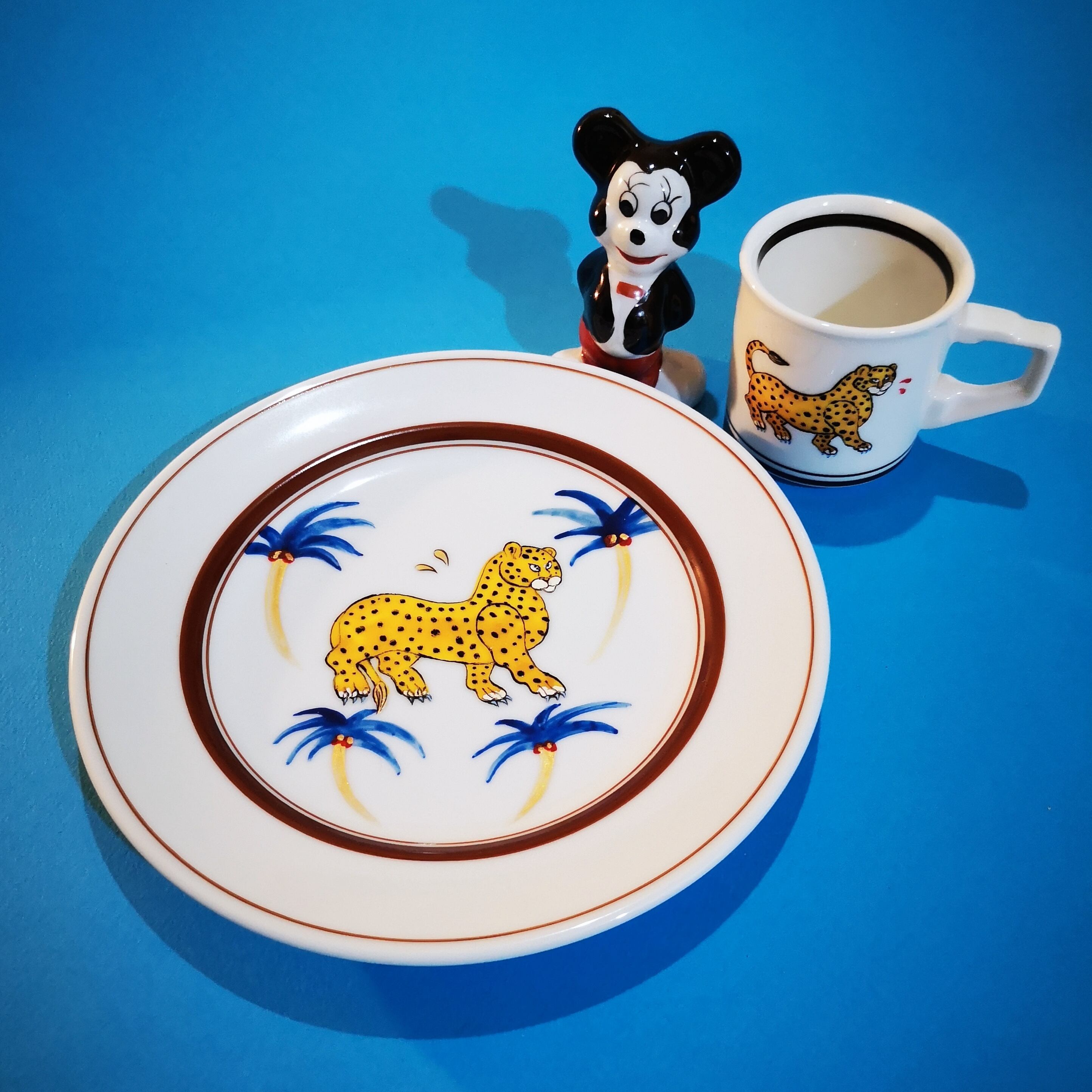 ニューヨークで買い付けてきたおかしなミッキーマウスのオーナメントに、クラシックなダイナーをイメージしたハンドペイントのパンサー柄プレートとコーヒーカップのSET。