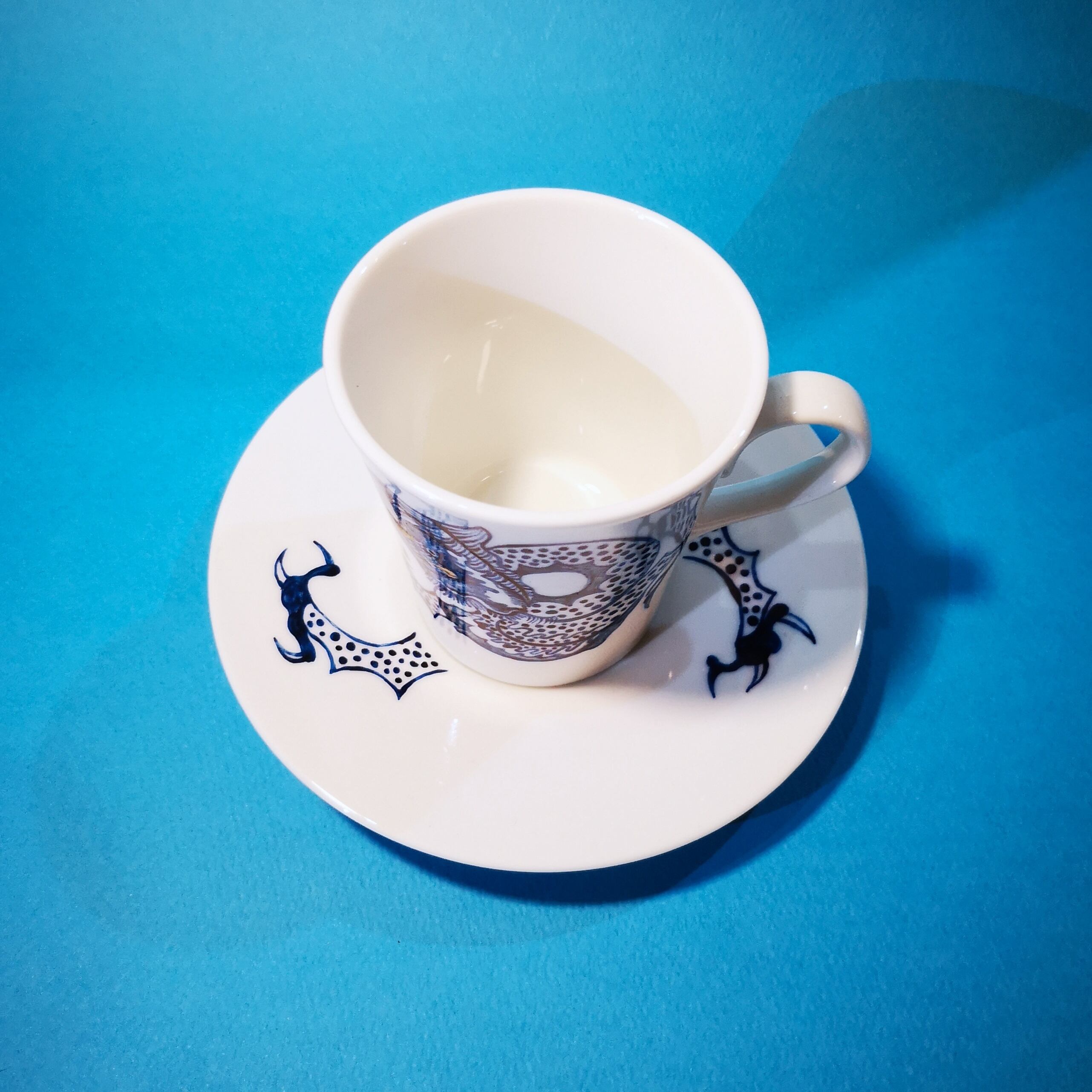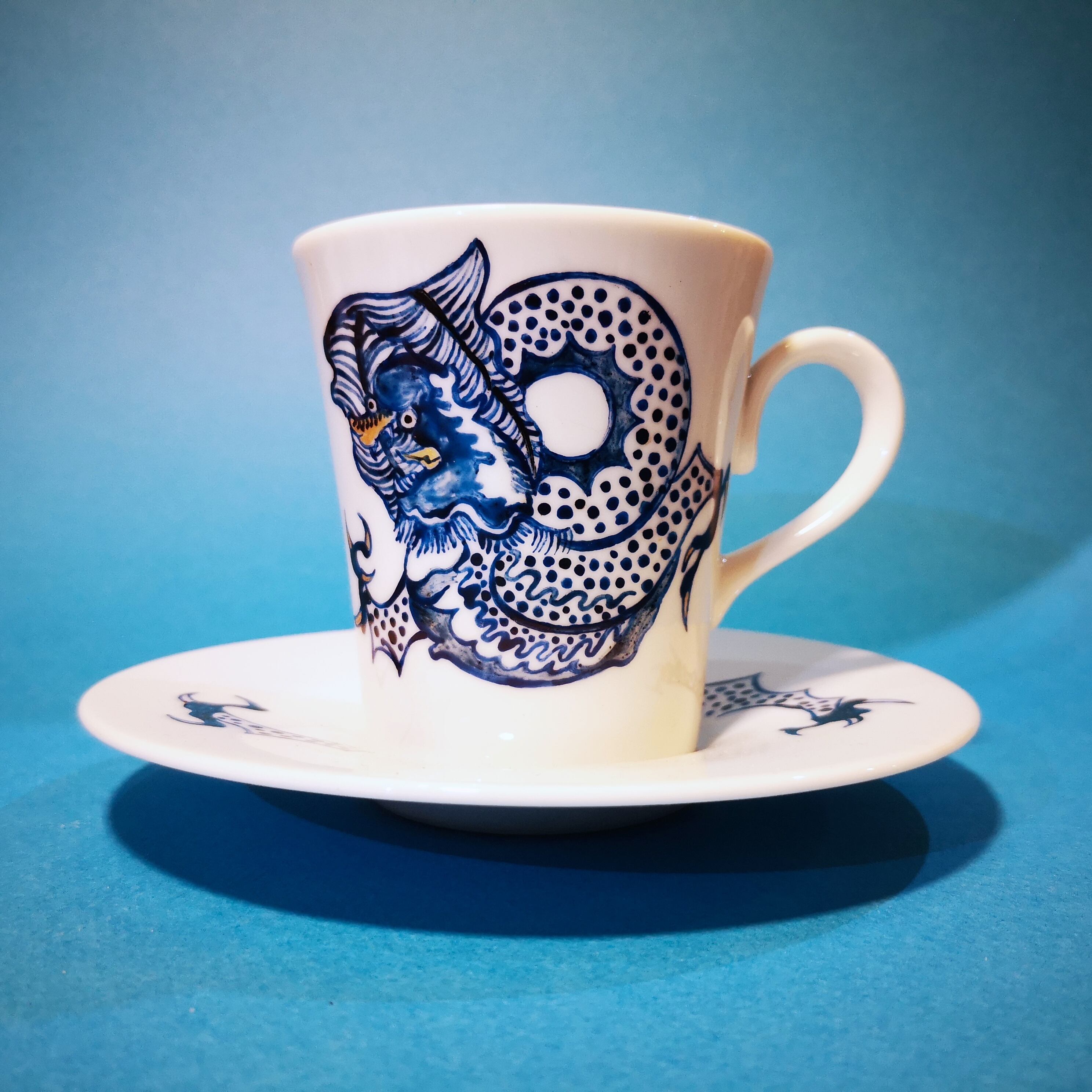 光の象徴の龍を、お皿とカップに描いたSETです。お皿とカップソーサーの裏には、縄文時代に使われていた邪気払いの文字が描かれています。